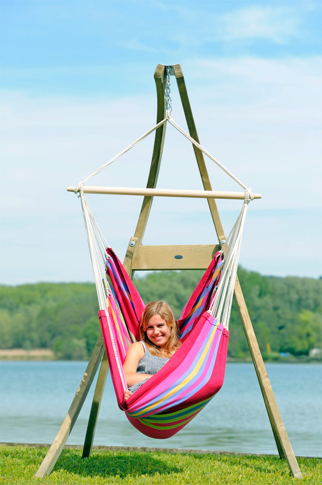 Brazíliából, a szieszta-világbajnokok országából érkezik álmodozásainak helye: a függőszék. A levegős bútordarab felfüggesztése és levétele gyerekjáték. Teljes relaxációval lebeghet az élet dolgai felett.