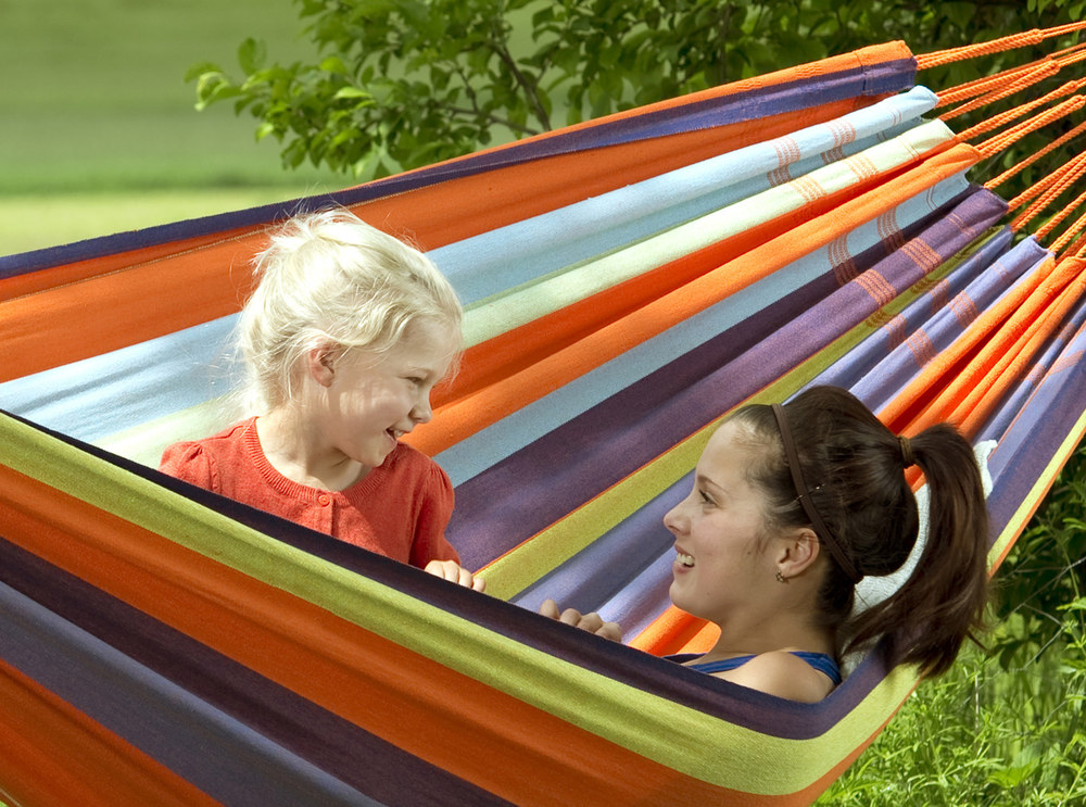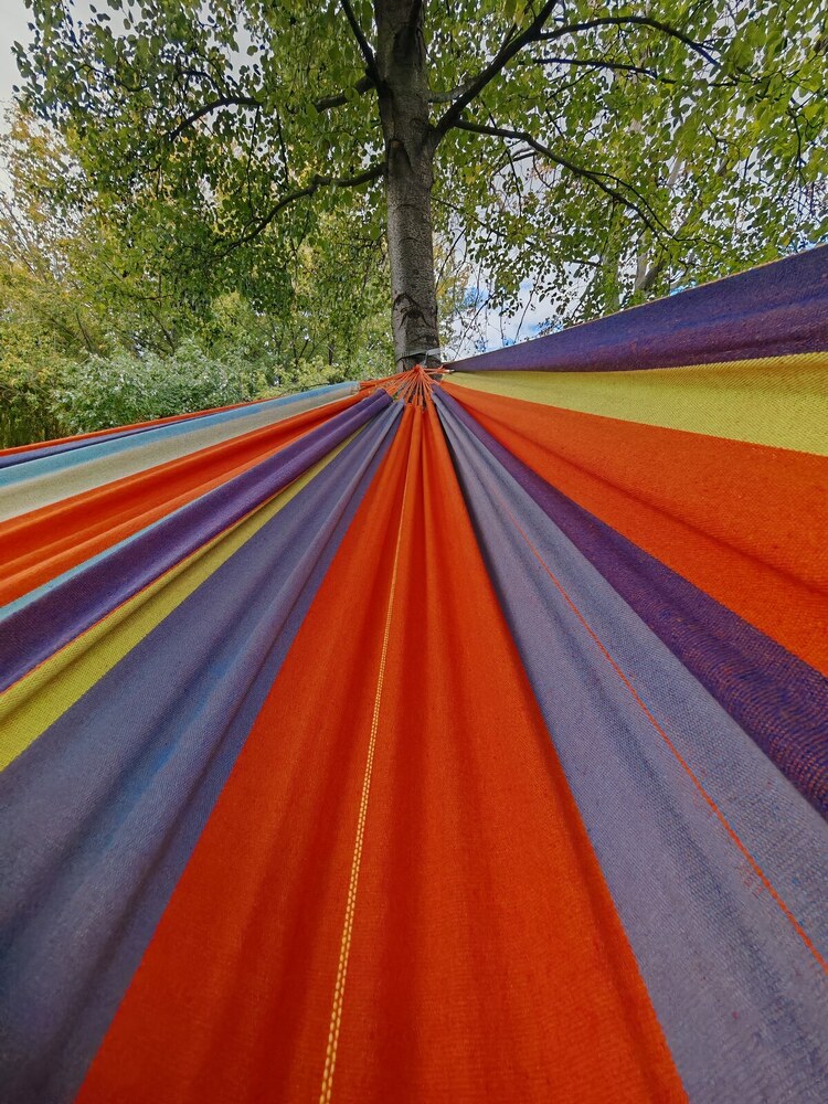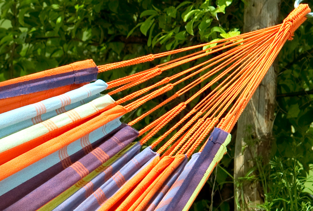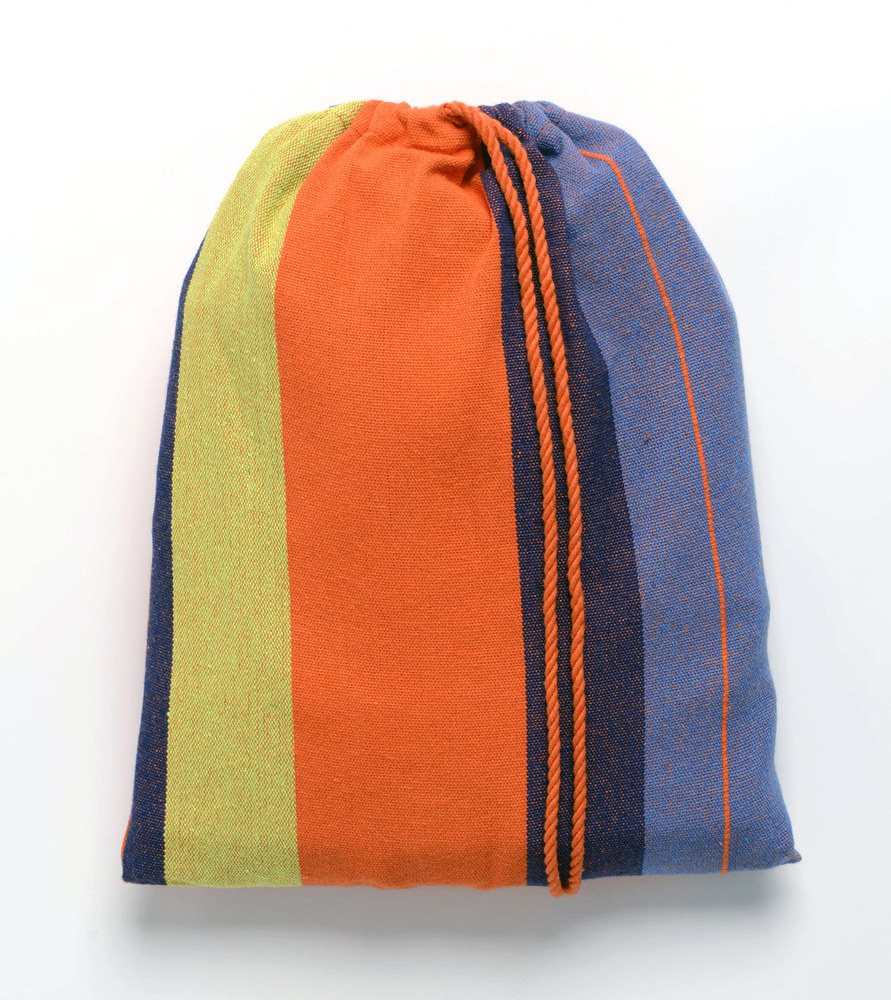 Nagy méretű függőágy Kolumbiából. Környezetbarát, újrahasznosított pamut alapanyagból, gyönyörű élénk színekkel.