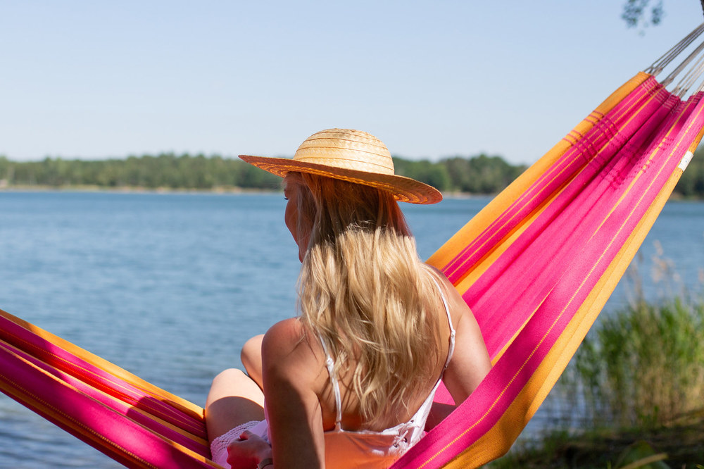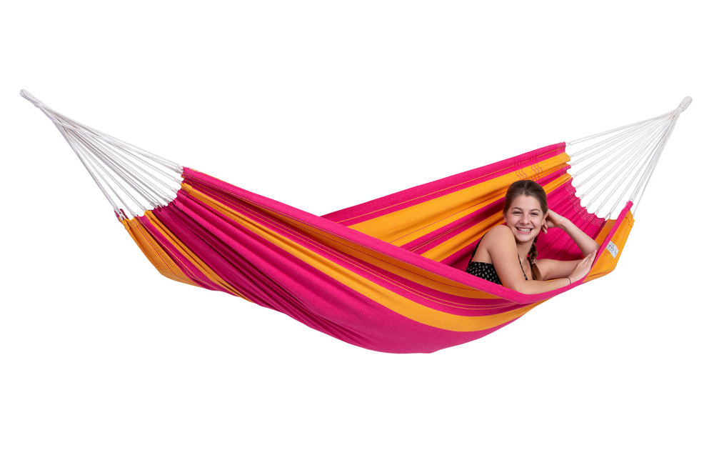 A választékunk legkisebb eredeti brazil függőágya: csak 310 cm hosszú, így egy kisebb erkélyen is elfér, de jó hozzá a Sumo állvány is.