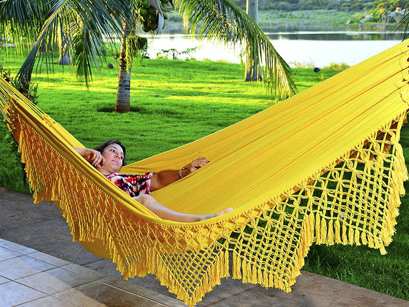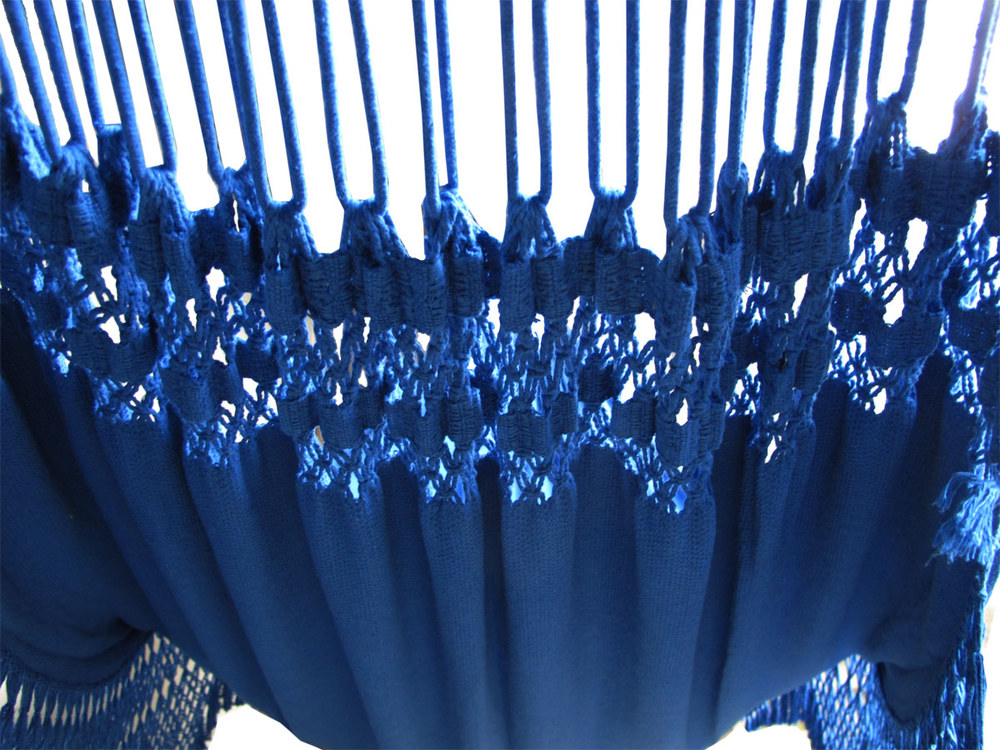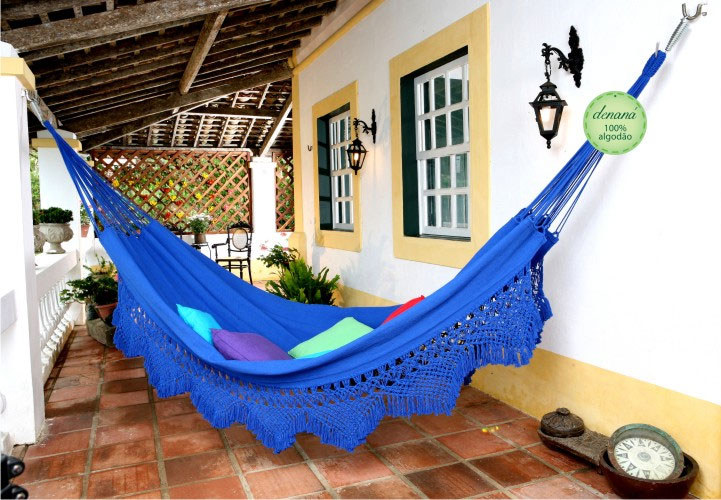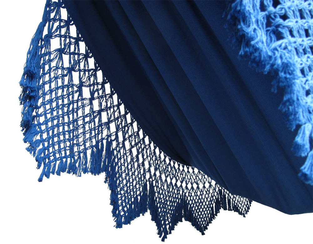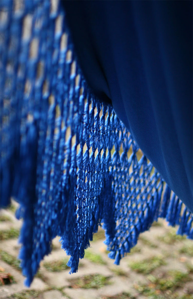 Luxus Brazíliából: hatalmas, igen kényelmes, extra erős és vastag szövésű. A felfüggesztőzsinórok minden más függőágyénál vastagabbak, az akasztó fül robosztus. Olyan nagy a füle, hogy nem is lehet közvetlenül karabinerre akasztani, előbb egy darab kötelet kell átfűzni rajta.