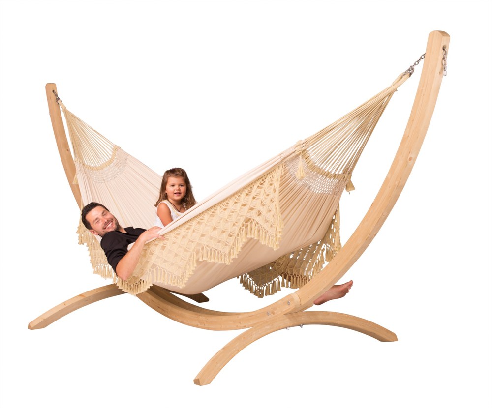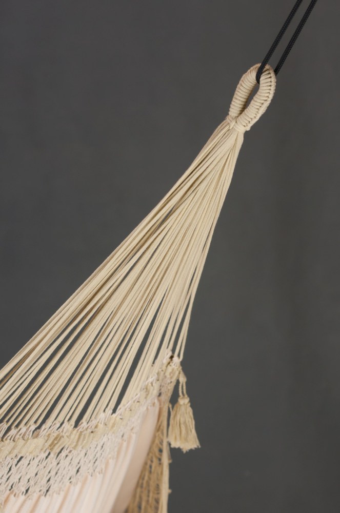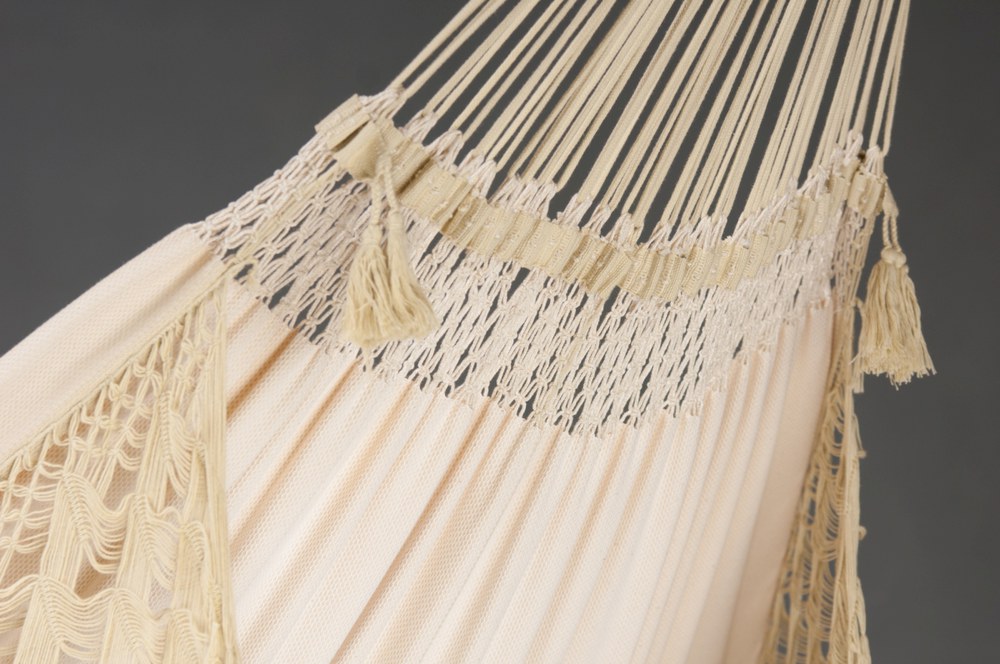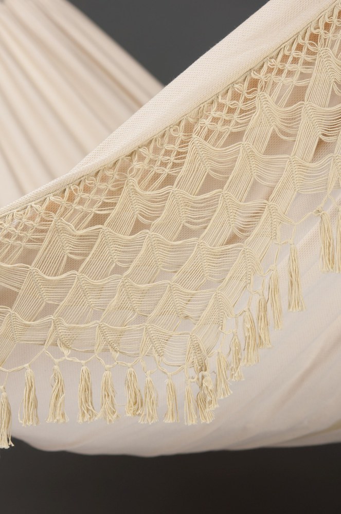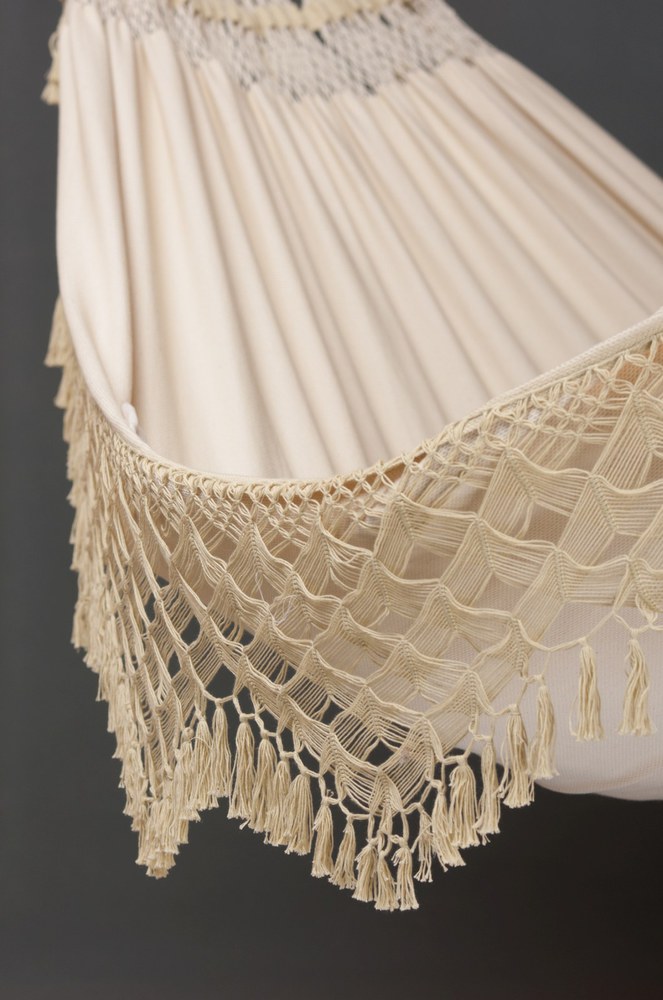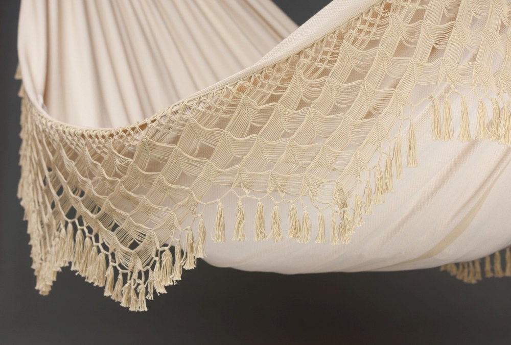 A brazil függőágyakat 100% pamutból állítják elő és szigorú minőségi ellenőrzésnek vetnek alá minden egyes darabot. A különleges, csipkés-rojtos széldíszítés bár más dél-amerikai függőágyaknál is megtalálható, mégis a legjellegzetesebben itt jelenik meg.
