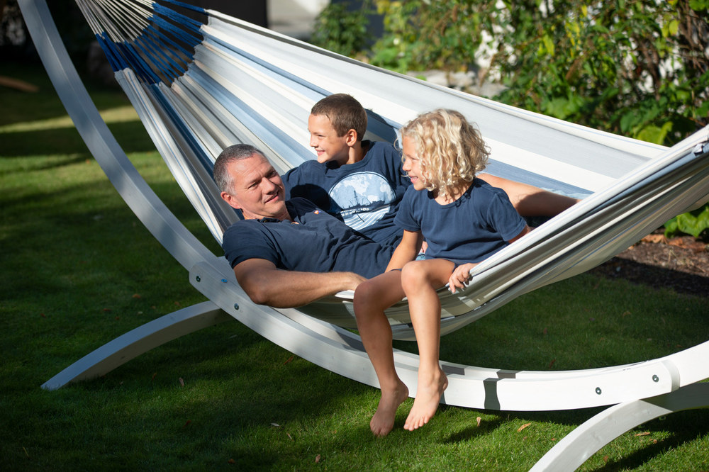 A La Siesta Brisa függőágy egész nyáron a szabadban hagyható! A Brisa ugyanis HamacTex® polipropilénől készül. Ez az alapanyag ellenáll az időjárás viszontagságainak, gyorsan szárad, és mégis meglepően hasonló a pamuthoz – mind küllemre, mind pedig tapintását tekintve. A függőágy szakadásbiztos széleit egy speciális technikával, a vetülékfonalak duplázásával alakítják ki – így tulajdonosa hosszú évekig élvezheti a La Siesta Brisa által nyújtott békés oázis érzését.