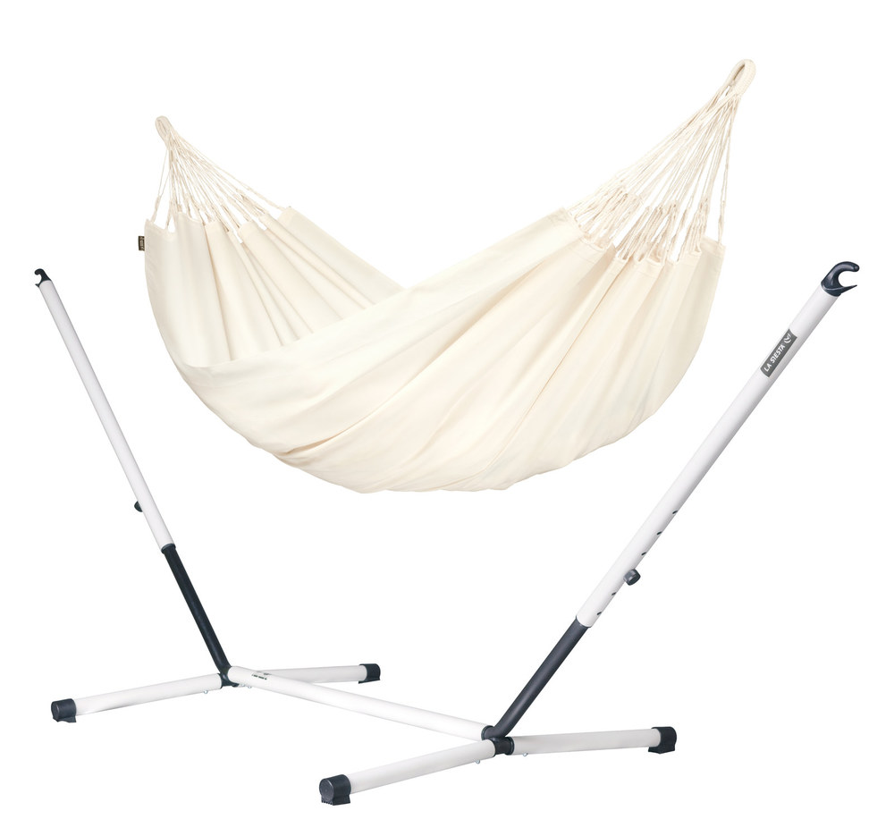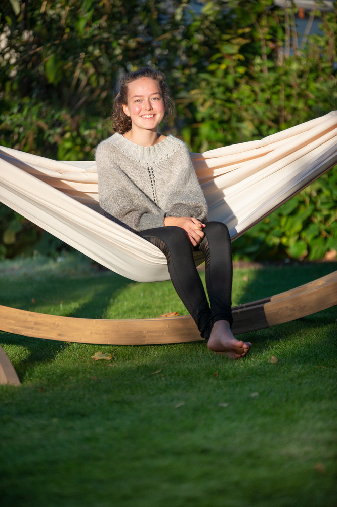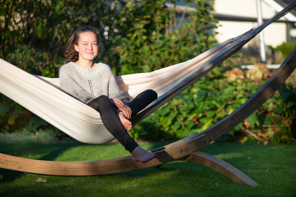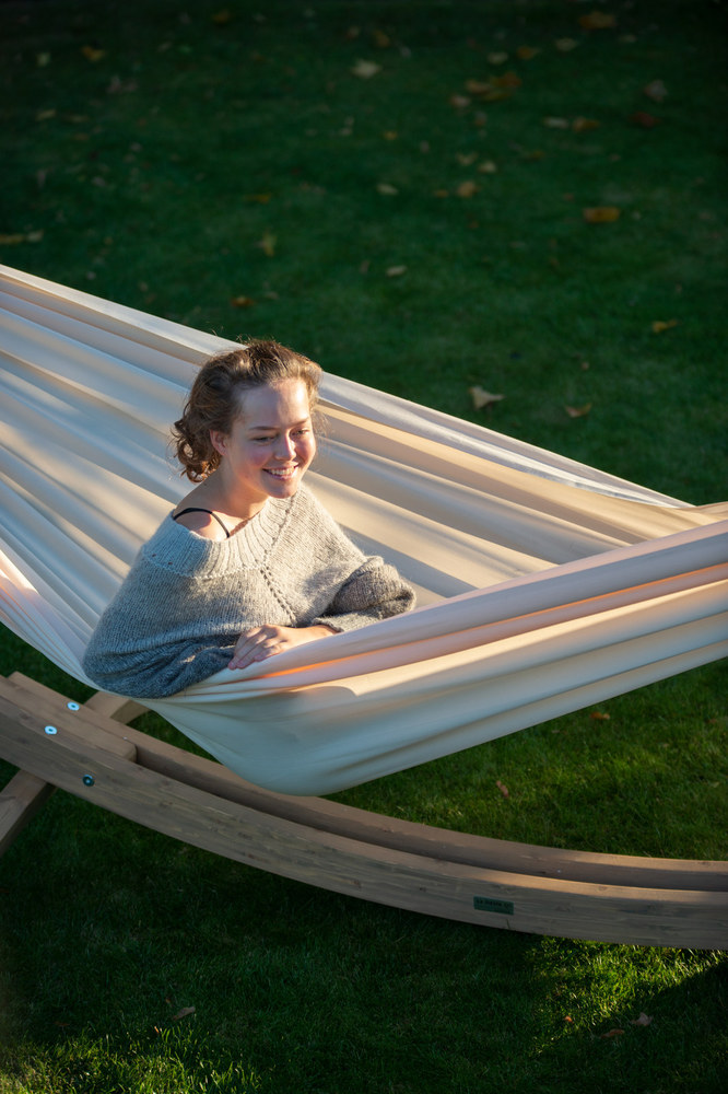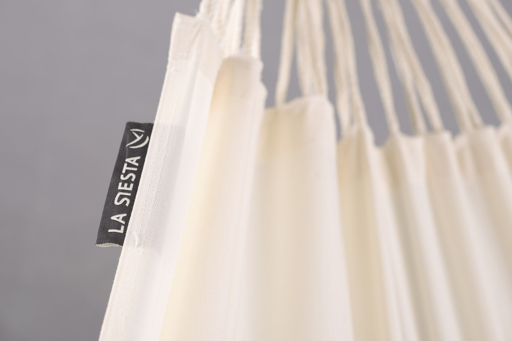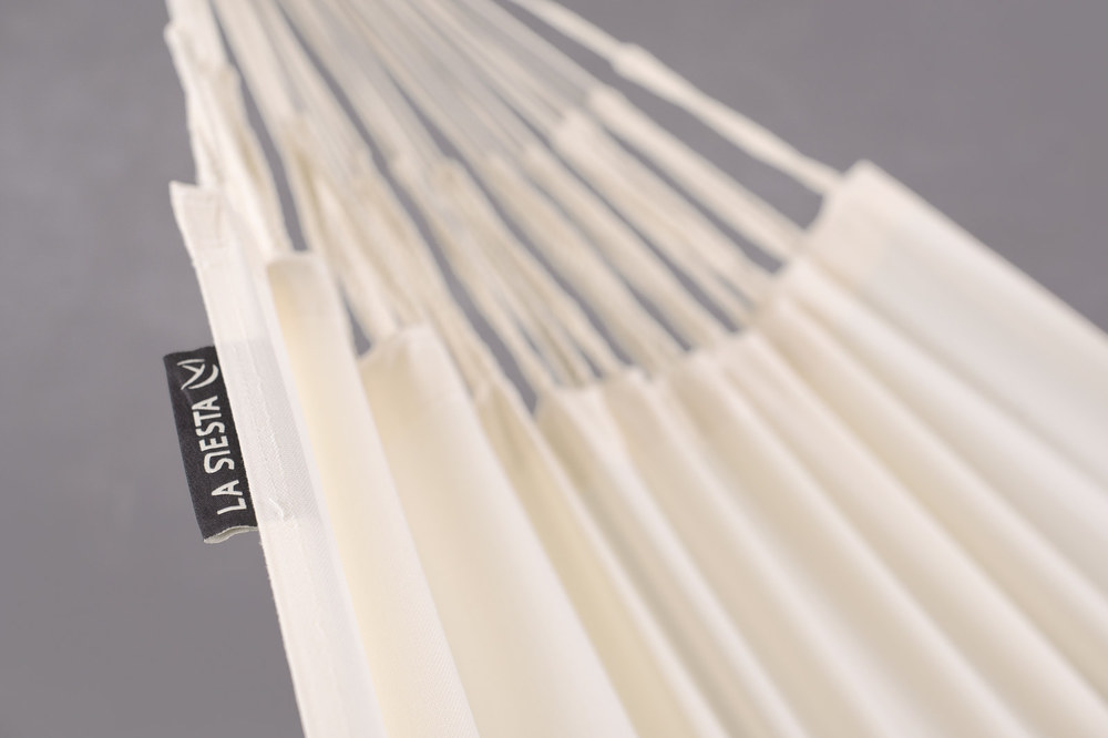 A La Siesta Brisa függőágy egész nyáron a szabadban hagyható! A Brisa ugyanis HamacTex® polipropilénől készül. Ez az alapanyag ellenáll az időjárás viszontagságainak, gyorsan szárad, és mégis meglepően hasonló a pamuthoz – mind küllemre, mind pedig tapintását tekintve. A függőágy szakadásbiztos széleit egy speciális technikával, a vetülékfonalak duplázásával alakítják ki – így tulajdonosa hosszú évekig élvezheti a La Siesta Brisa által nyújtott békés oázis érzését.