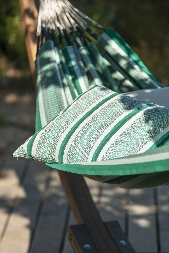 A Modesta függőágy szálai 100% tiszta biopamutból készülnek, amit a hitelesített szerves művelés tesz lehetővé. Lélegzetelállítóan gyönyörű természetes színek, melyek tökéletesen illeszkednek életének hangulatához. Hatalmas méret az extra kényelemért.