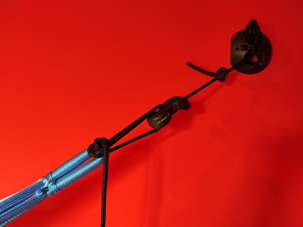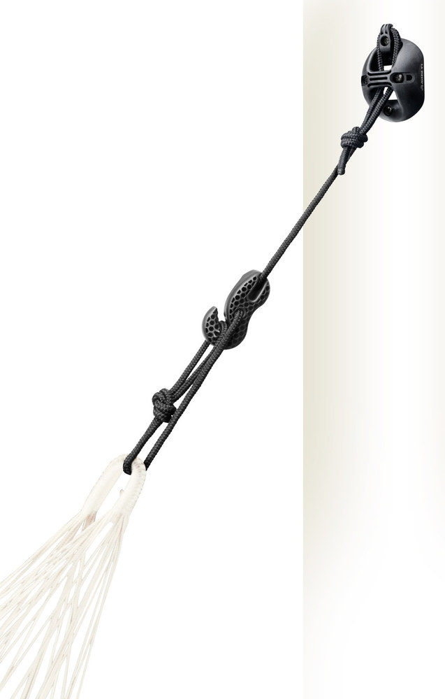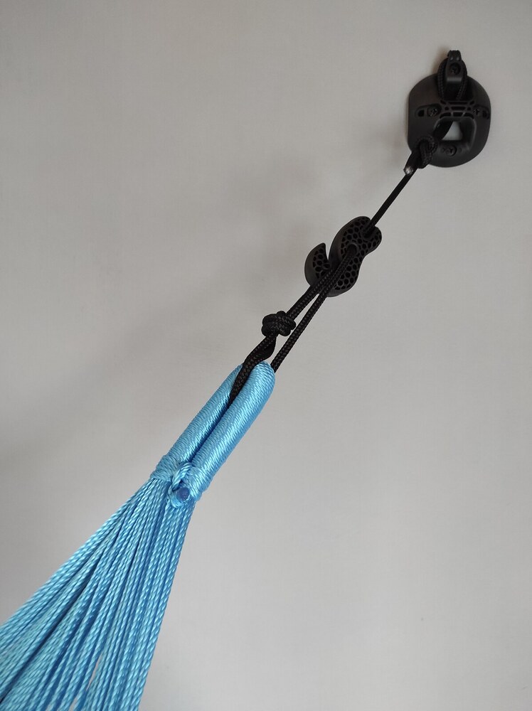 A konstrukció nagyon praktikus, az anyag ellenáll az UV-sugaraknak és időjárásálló. A felfüggesztés ezen módja nem csupán leegyszerűsíti a kötél hosszának beállítását, de lehetővé teszi a függőágy gyors felszerelését és eltávolítását.