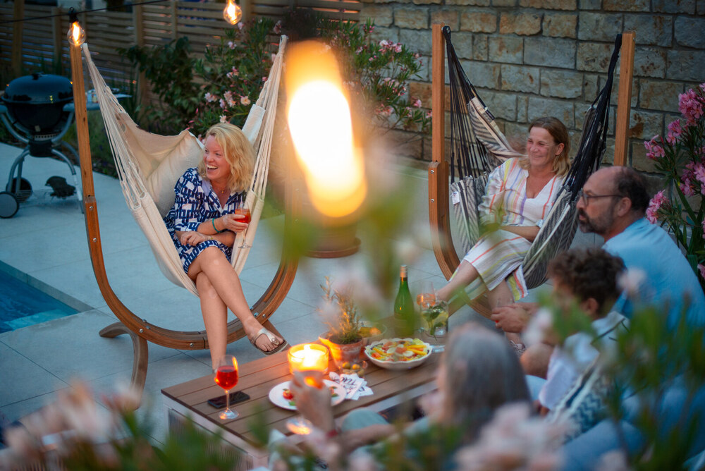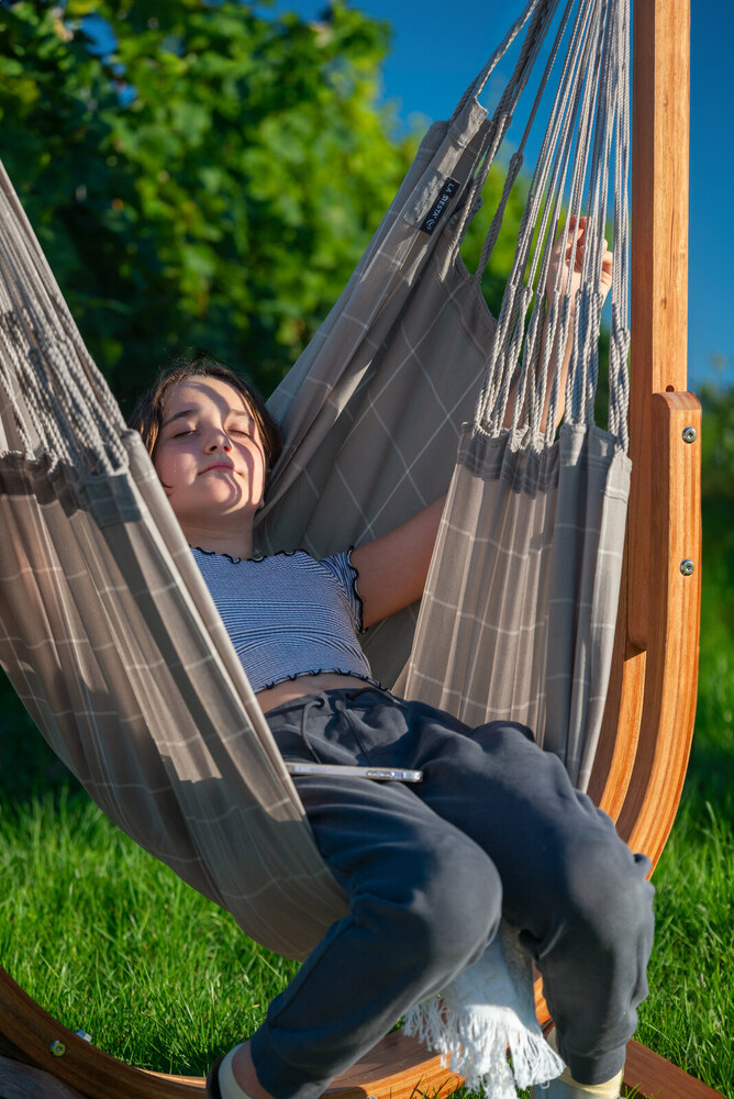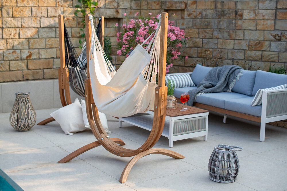A kertben és a lakásban is, tehát egész évben használhatod a függőfoteled. Nem kell plafont fúrni, nagy fát keresni. Hűvösebb időben kiteheted a napra, nagy melegben beviheted az árnyékba, télen pedig a nappaliba.