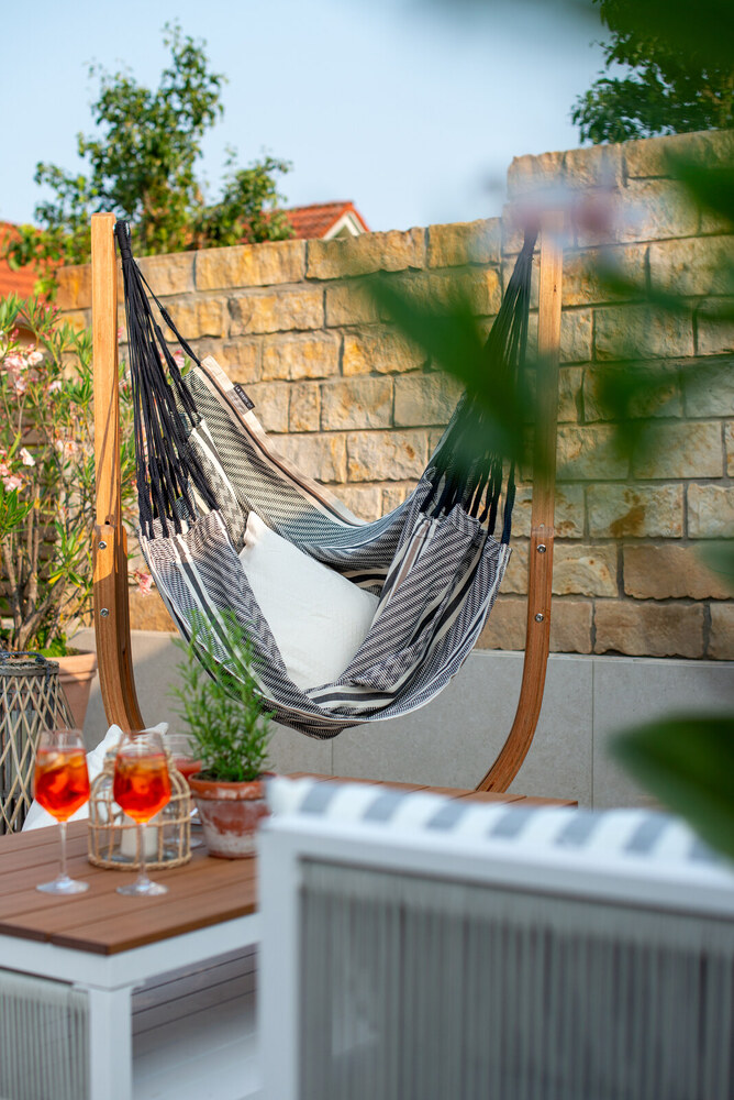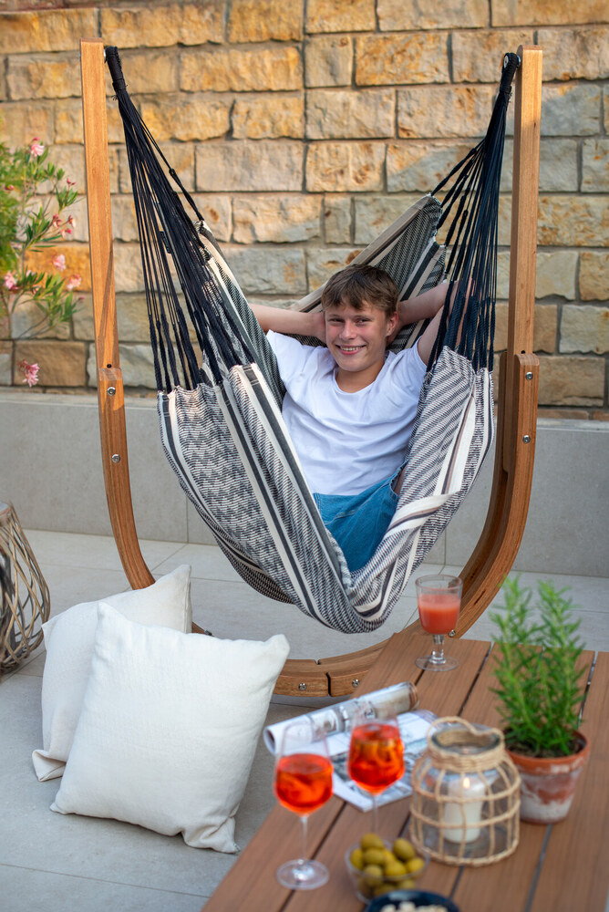 A Habana Zebra függőfotel fantasztikusan kényelmes és tágas, organikus pamut anyagból készült - a súlytalanság érzetét biztosítja.