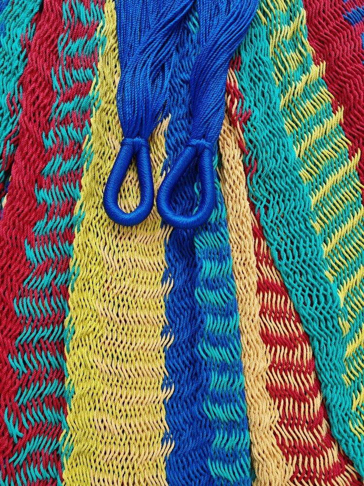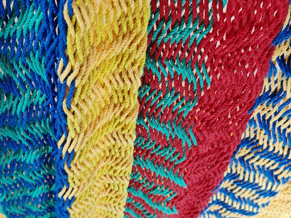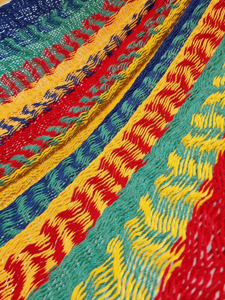 A hagyományos 'sprang' szövési technikának köszönhetően a függőágy tökéletesen felveszi a test alakját. A párhuzamos, de egymásba hurkolt szálak olyan felületet alkotnak, amely hosszanti irányban fix, keresztben rugalmas. A legnagyobb hőségben is szellős, kellemesen hűsít a szálak között átjáró levegő.