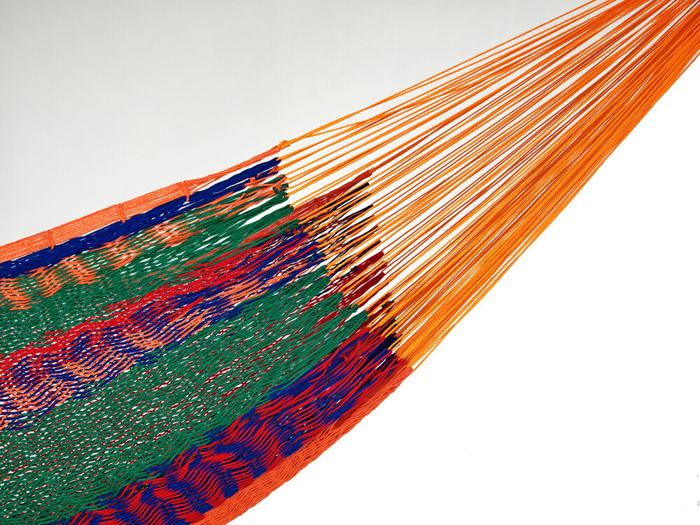 A hagyományos 'sprang' szövési technikának köszönhetően a függőágy tökéletesen felveszi a test alakját. A párhuzamos, de egymásba hurkolt szálak olyan felületet alkotnak, amely hosszanti irányban fix, keresztben rugalmas. A legnagyobb hőségben is szellős, kellemesen hűsít a szálak között átjáró levegő.