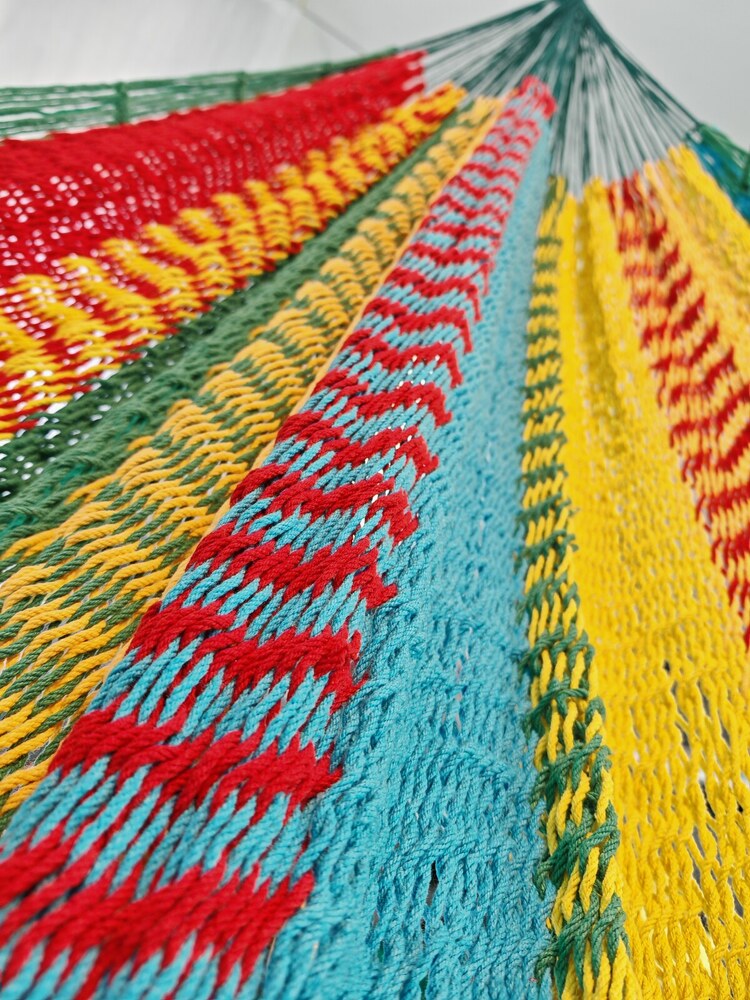 A finom tapintású maya függőágyak Mexikó eldugott falvaiban készülnek, kézi munkával. Egy Maya Family függőágy fekvőfelülete kb. 1100 méter pamut fonalból készült, hurkolt háló. A két végén az akasztó rész 220 méter szintetikus (poliészter) szálból áll, a szálvastagság 3 mm.