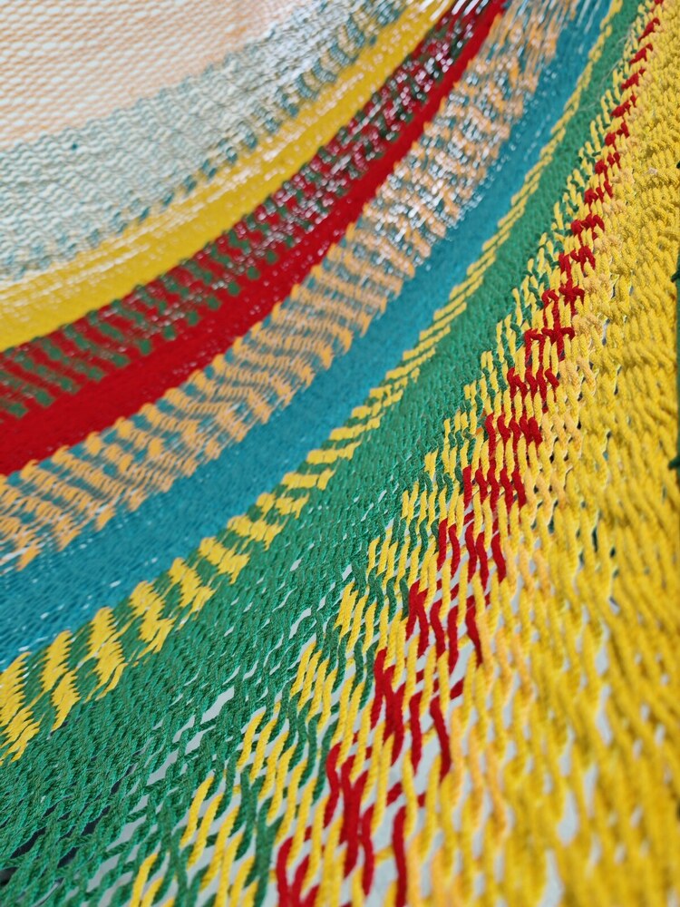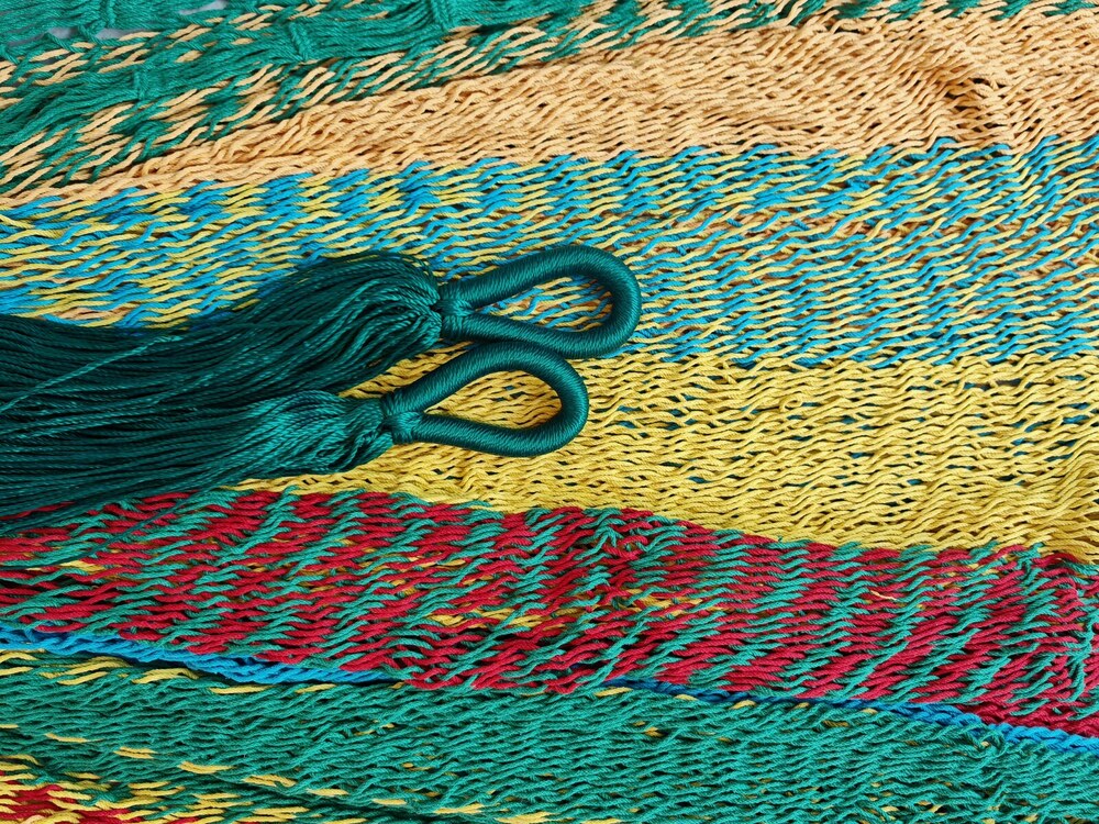 A hagyományos 'sprang' szövési technikának köszönhetően a függőágy tökéletesen felveszi a test alakját. A párhuzamos, de egymásba hurkolt szálak olyan felületet alkotnak, amely hosszanti irányban fix, keresztben rugalmas. A legnagyobb hőségben is szellős, kellemesen hűsít a szálak között átjáró levegő.