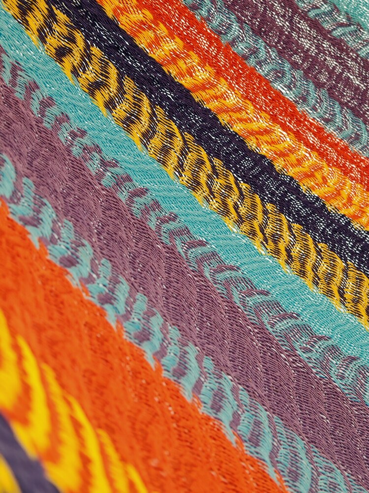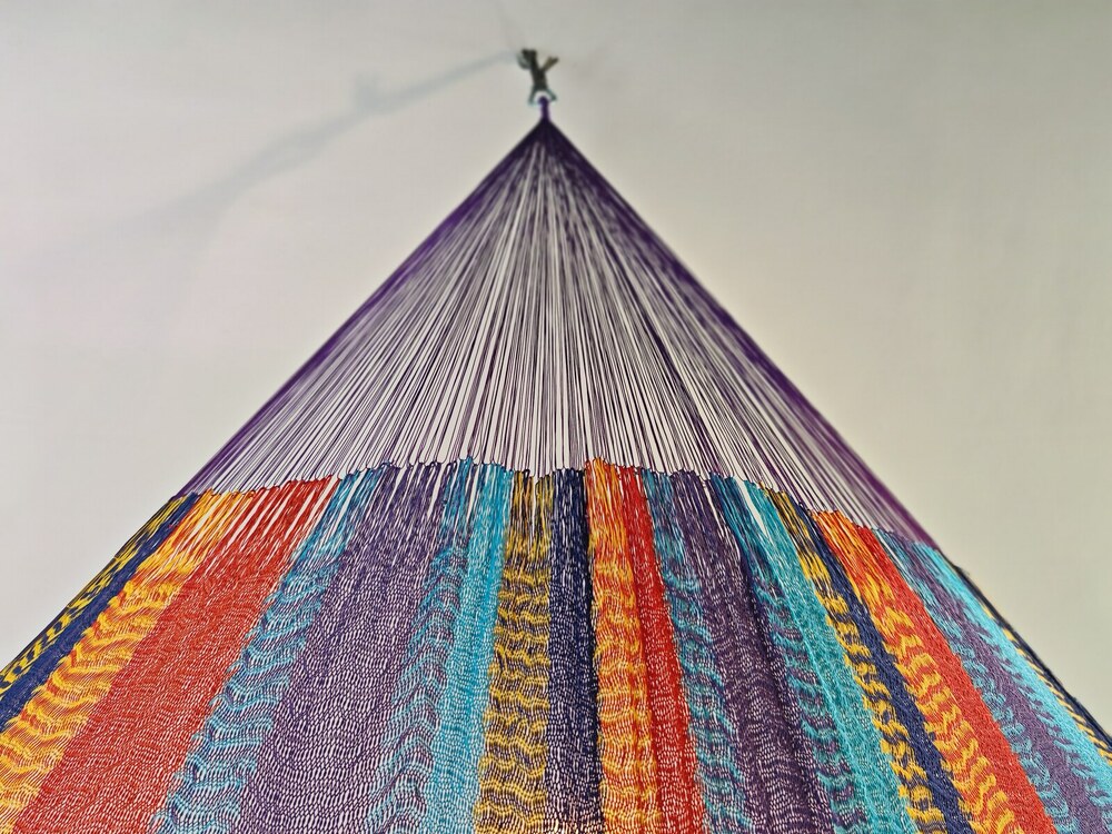 A hagyományos 'sprang' szövési technikának köszönhetően a függőágy tökéletesen felveszi a test alakját. A párhuzamos, de egymásba hurkolt szálak olyan felületet alkotnak, amely hosszanti irányban fix, keresztben rugalmas. A legnagyobb hőségben is szellős, kellemesen hűsít a szálak között átjáró levegő.