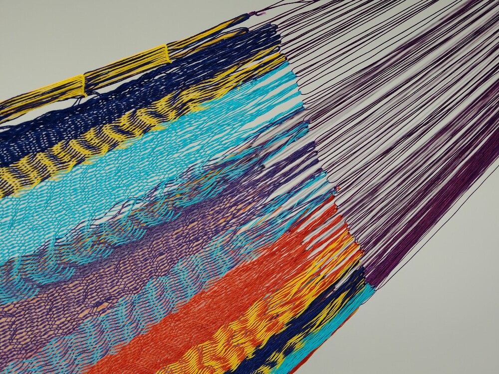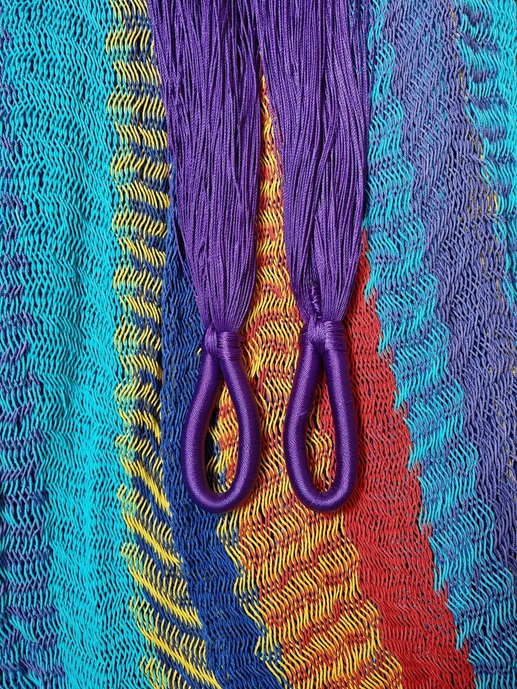 A finom tapintású maya függőágyak Mexikó eldugott falvaiban készülnek, kézi munkával. Egy Maya Titan függőágy fekvőfelülete kb. 2400 méter pamut fonalból készült, hurkolt háló. A két végén az akasztó rész 800 méter szintetikus szálból áll, a szálvastagság 1 mm.