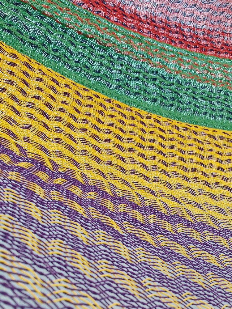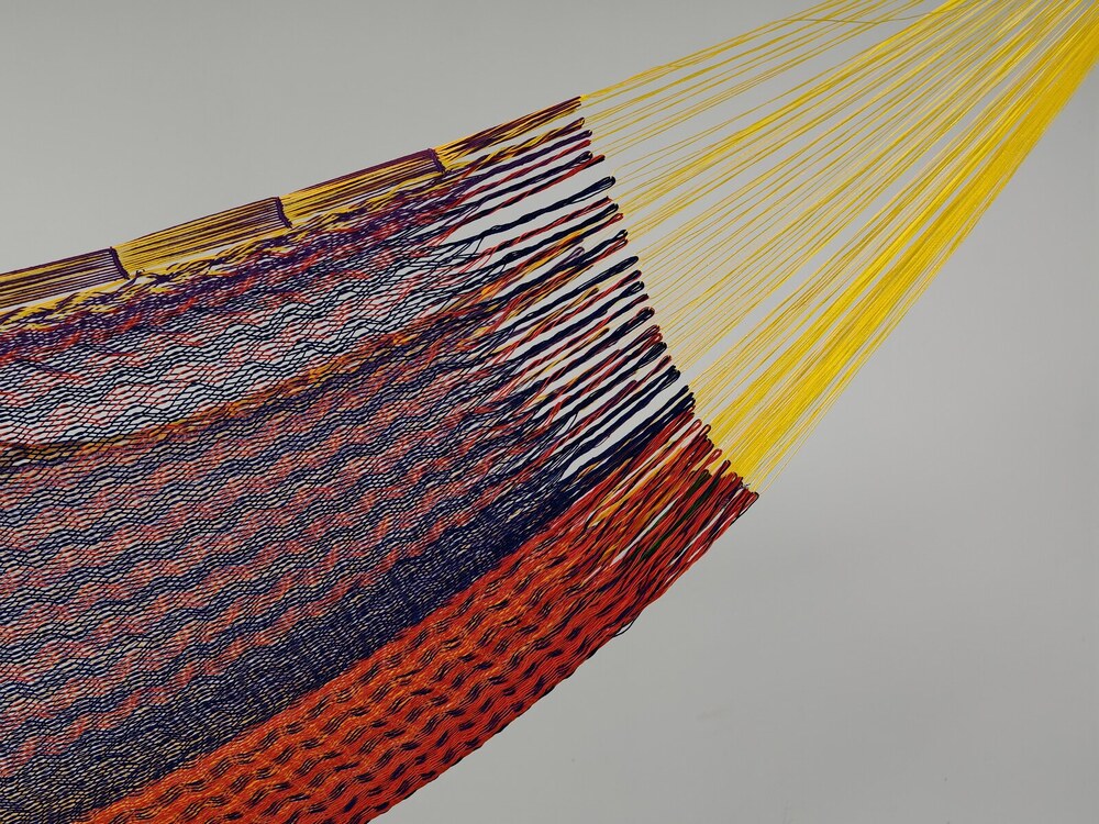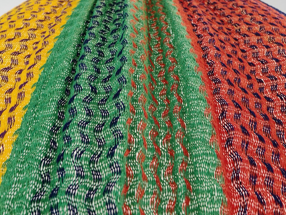 A hagyományos 'sprang' szövési technikának köszönhetően a függőágy tökéletesen felveszi a test alakját. A párhuzamos, de egymásba hurkolt szálak olyan felületet alkotnak, amely hosszanti irányban fix, keresztben rugalmas. A legnagyobb hőségben is szellős, kellemesen hűsít a szálak között átjáró levegő.