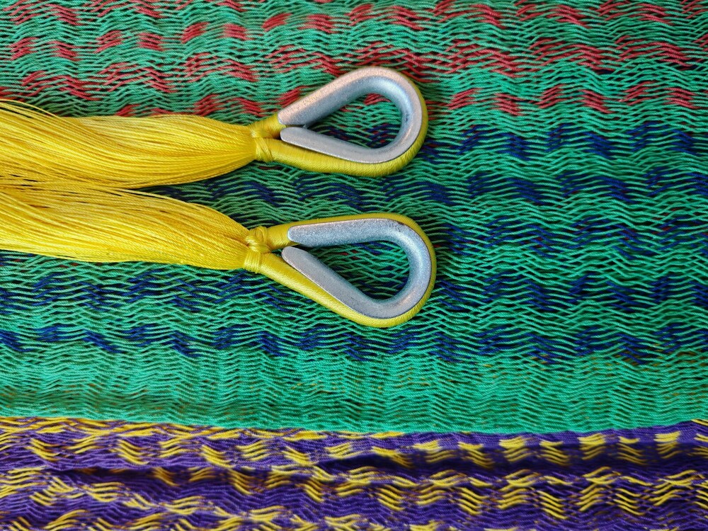 A finom tapintású maya függőágyak Mexikó eldugott falvaiban készülnek, kézi munkával. Egy Maya Titan függőágy fekvőfelülete kb. 2400 méter pamut fonalból készült, hurkolt háló. A két végén az akasztó rész 800 méter szintetikus szálból áll, a szálvastagság 1 mm.