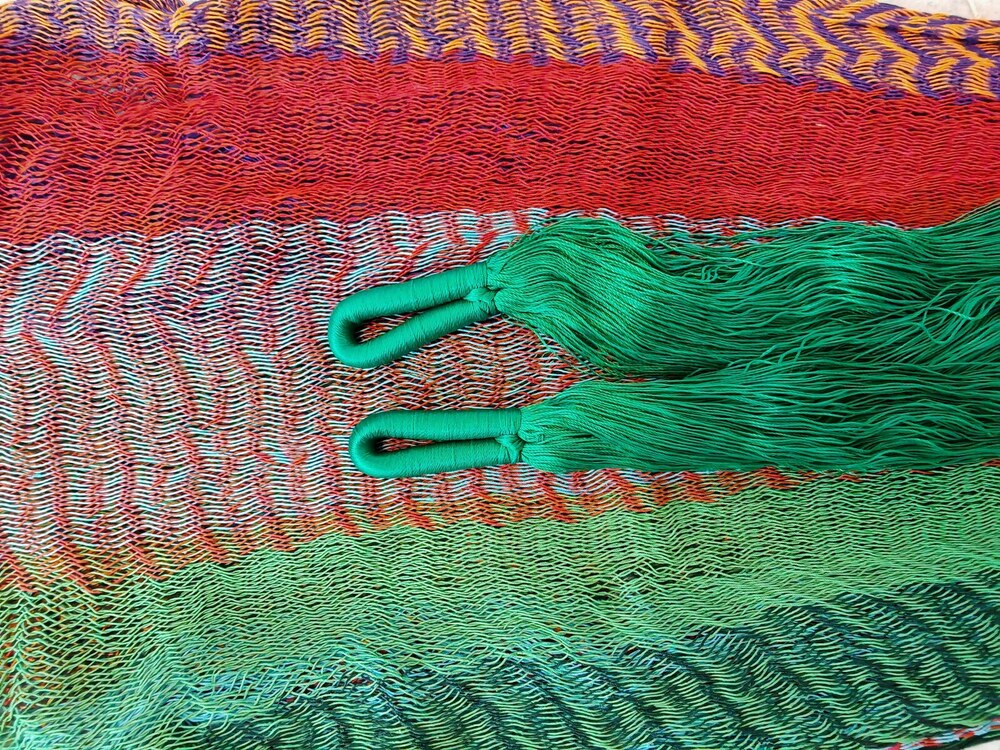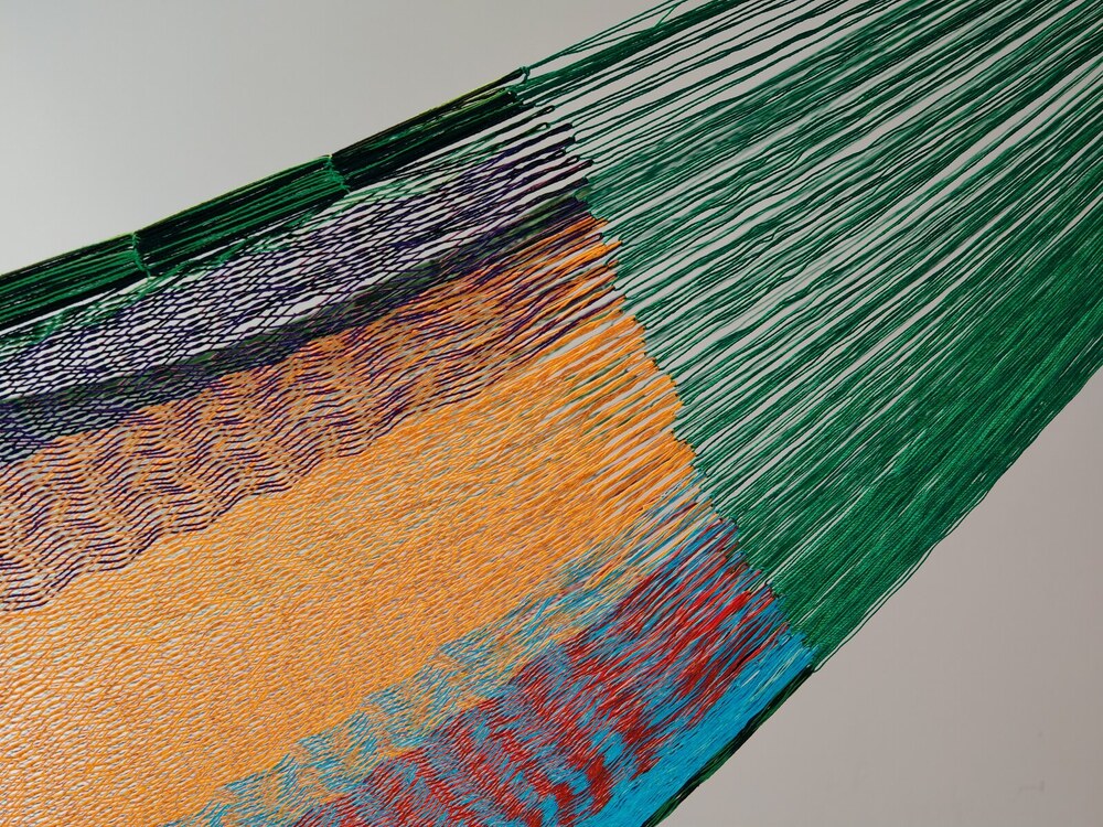 A hagyományos 'sprang' szövési technikának köszönhetően a függőágy tökéletesen felveszi a test alakját. A párhuzamos, de egymásba hurkolt szálak olyan felületet alkotnak, amely hosszanti irányban fix, keresztben rugalmas. A legnagyobb hőségben is szellős, kellemesen hűsít a szálak között átjáró levegő.