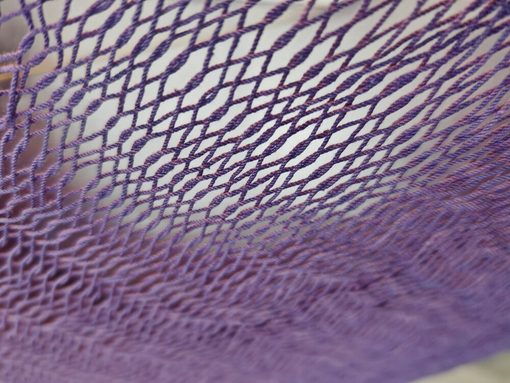 A hagyományos 'sprang' szövési technikának köszönhetően a függőágy tökéletesen felveszi a test alakját. A párhuzamos, de egymásba hurkolt szálak olyan felületet alkotnak, amely hosszanti irányban fix, keresztben rugalmas. A legnagyobb hőségben is szellős, kellemesen hűsít a szálak között átjáró levegő.