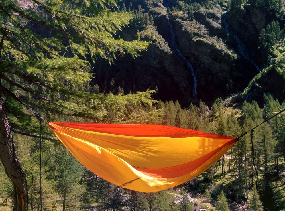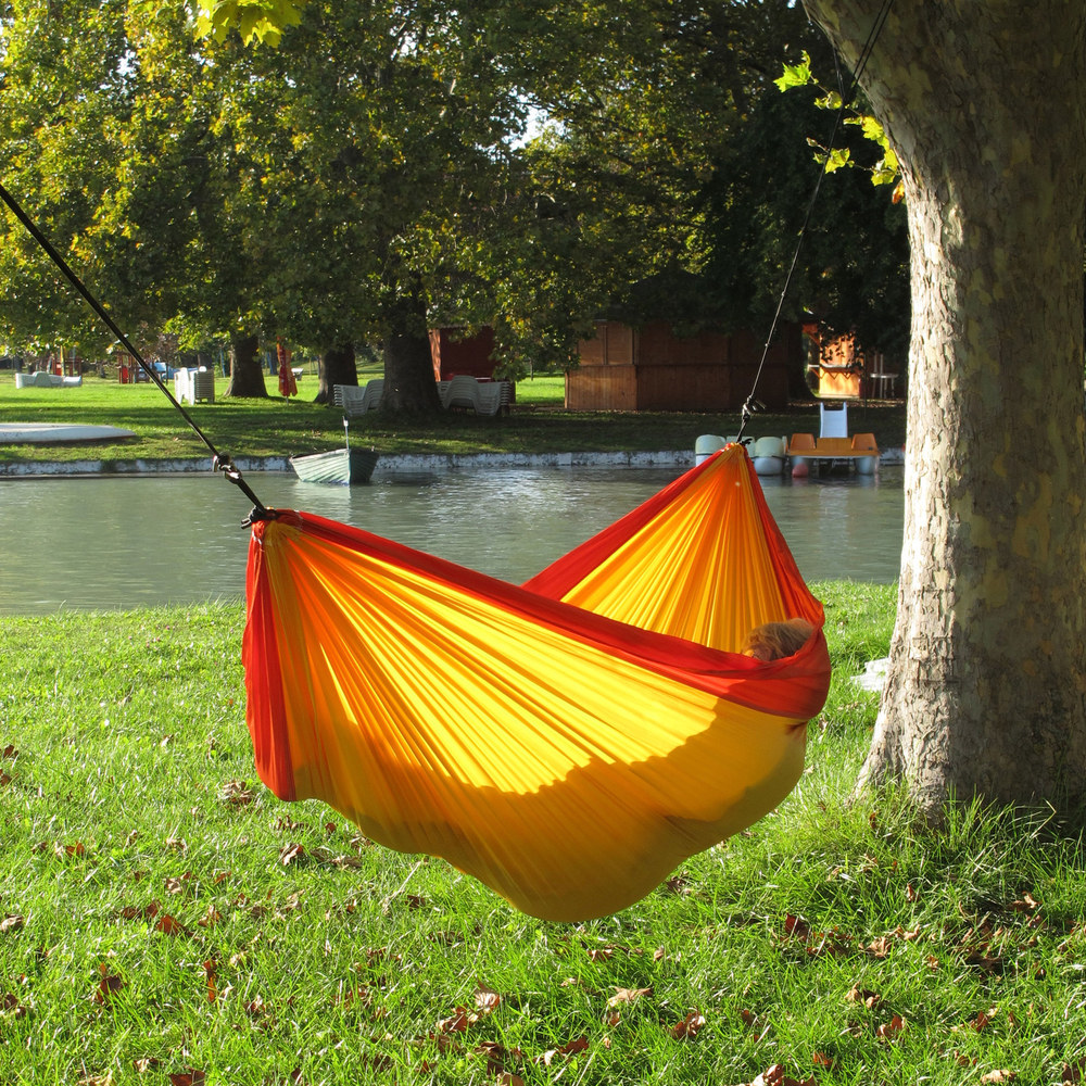 Az eredeti ejtőernyőselyem függőágy.