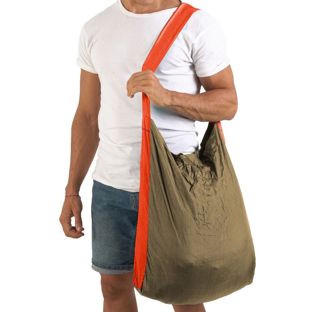 A Ticket To The Moon függőágyak gyártása során keletkezett maradék anyagból készült bevásárló táska.