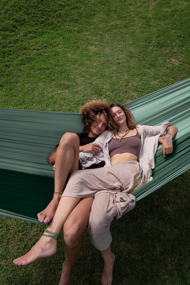 Az eredeti ejtőernyőselyem függőágy hatalmas, "nászutas" verziója.