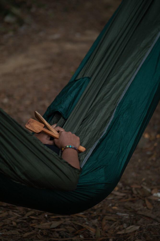 Az eredeti ejtőernyőselyem függőágy, extra nagy méretben. Harminc centivel szélesebb, mint az Original méret.