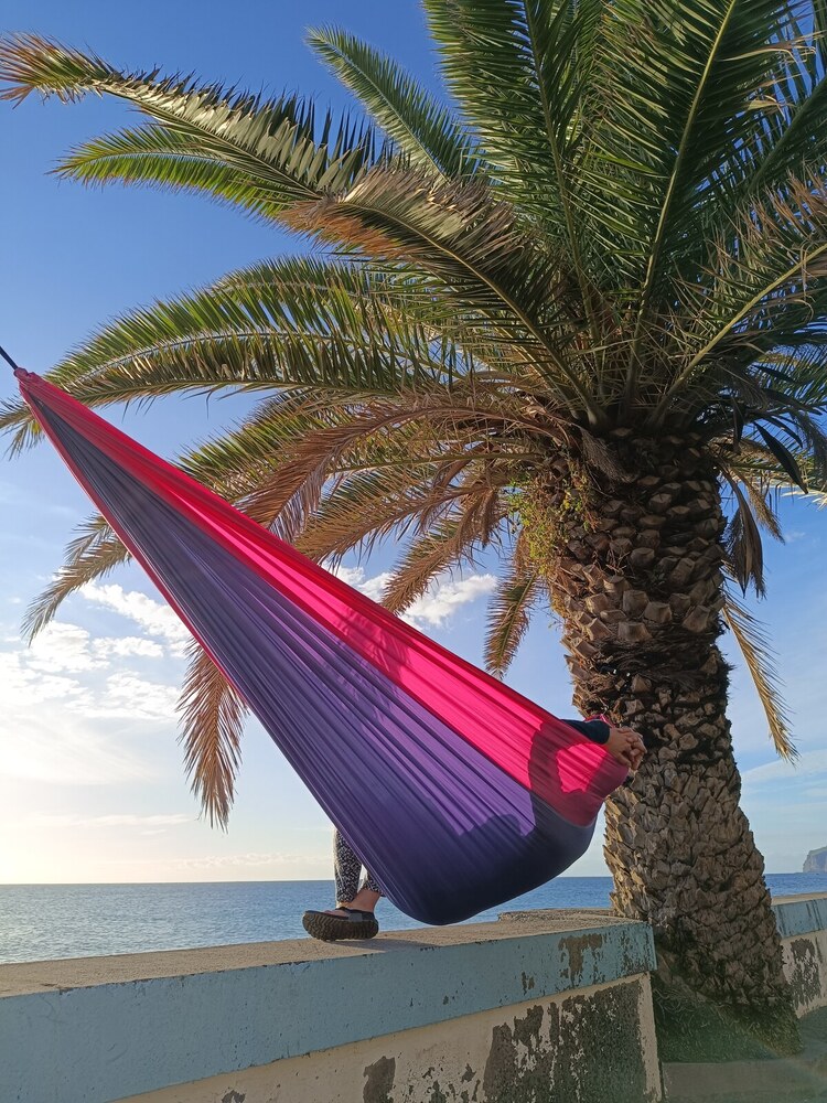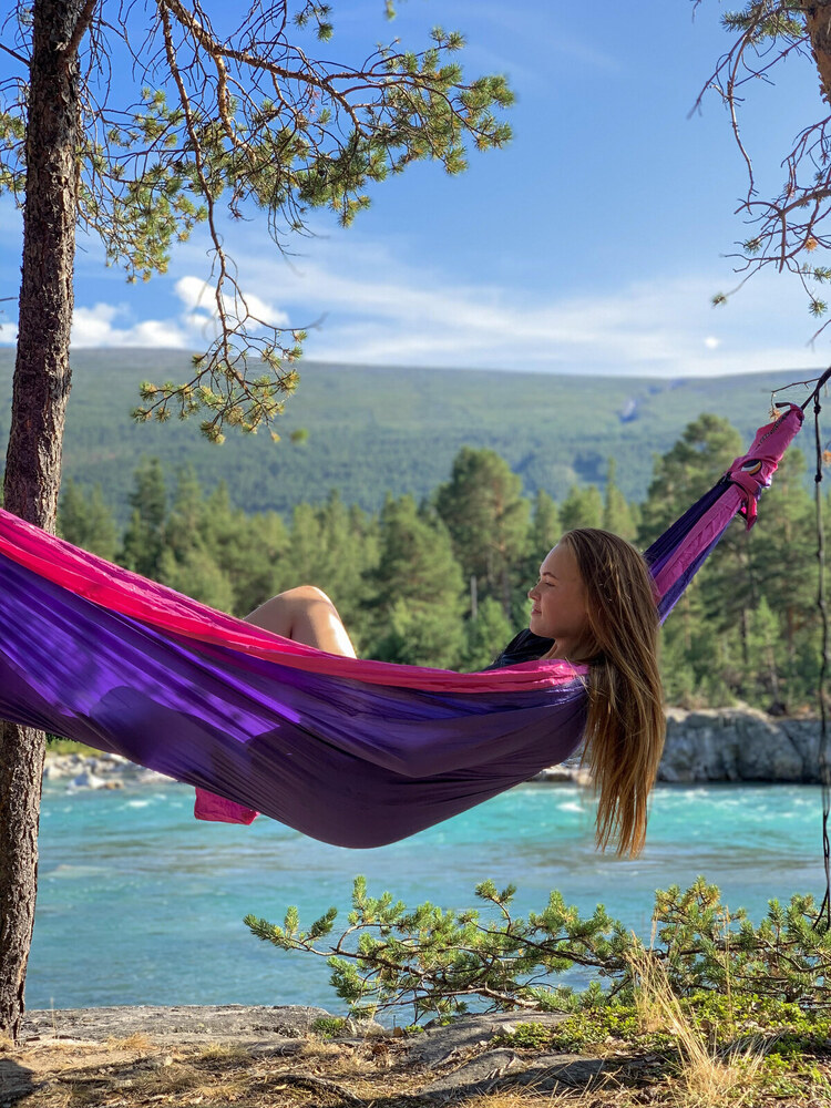 Az eredeti ejtőernyőselyem függőágy, extra nagy méretben. Harminc centivel szélesebb, mint az Original (double) méret.