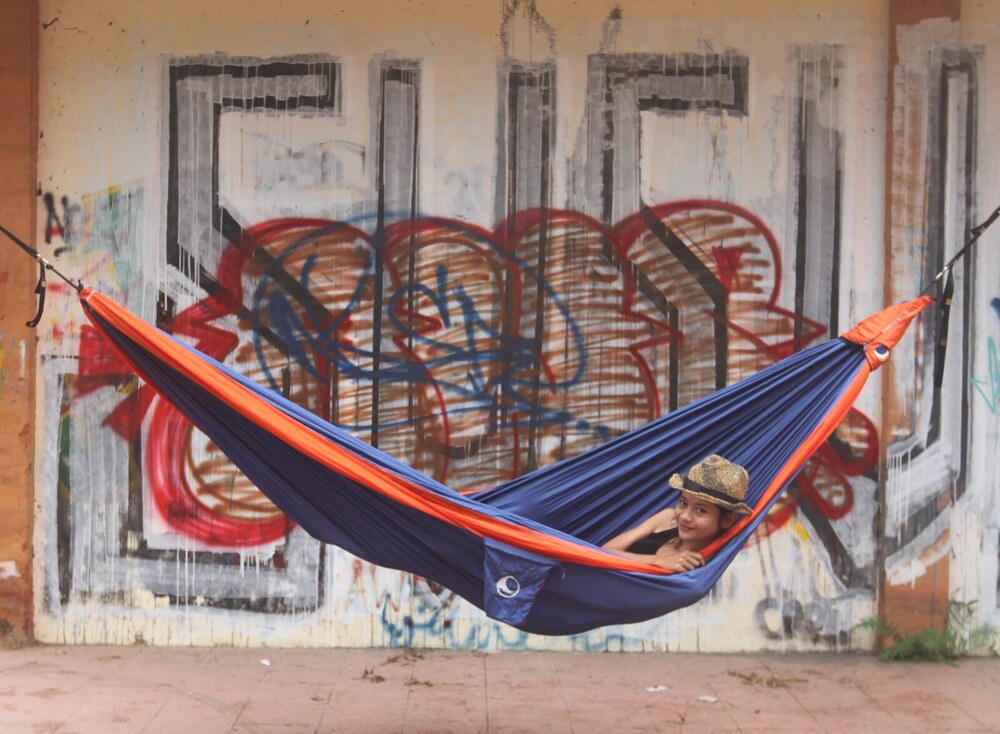 Az eredeti ejtőernyőselyem függőágy, extra nagy méretben. Harminc centivel szélesebb, mint az Original (double) méret.