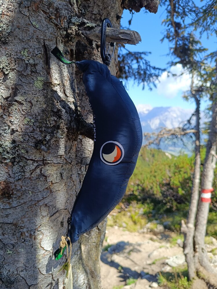 A függőágy mindkét végén 10KN teherbírású ultralight karabinerek vannak, ez a csomag része.