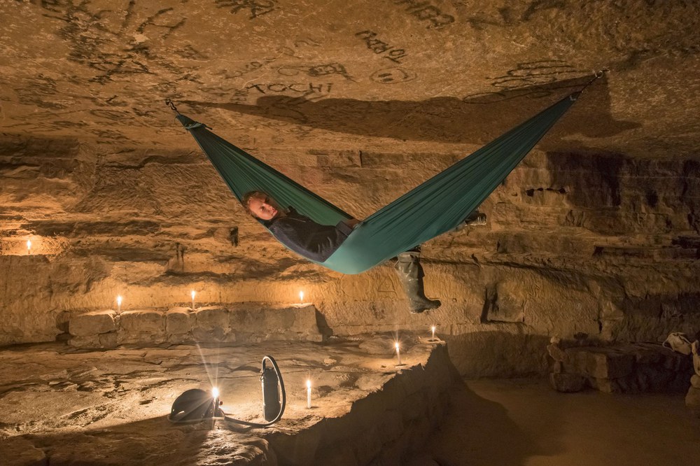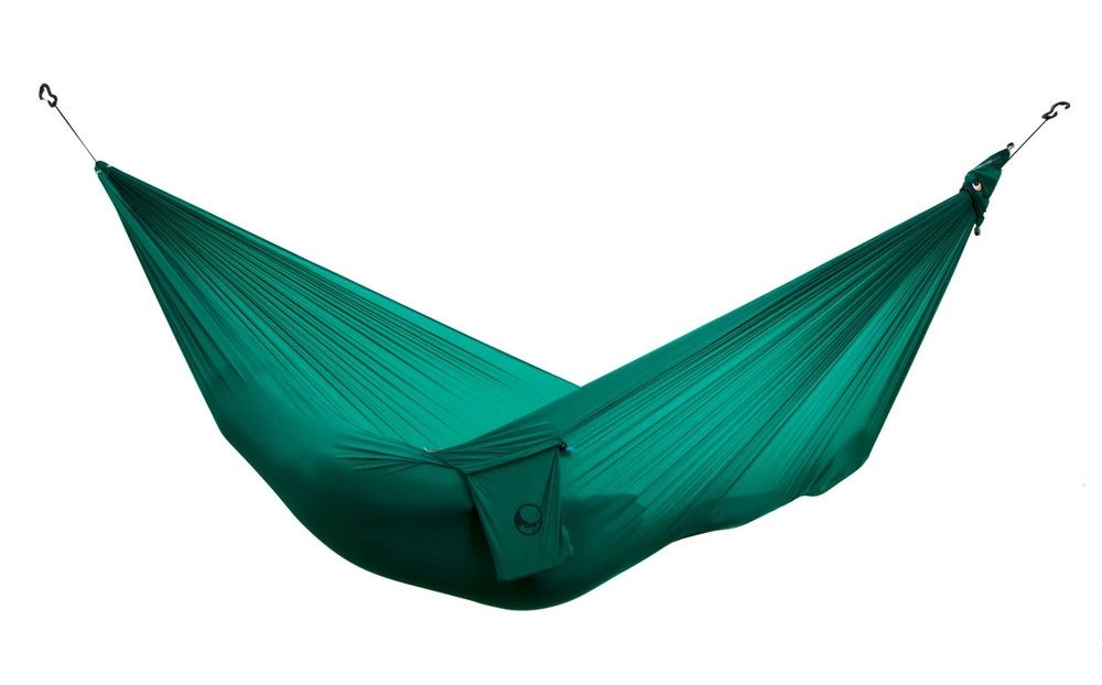 A függőágy mindkét végén 10KN teherbírású ultralight karabinerek vannak, ez a csomag része.