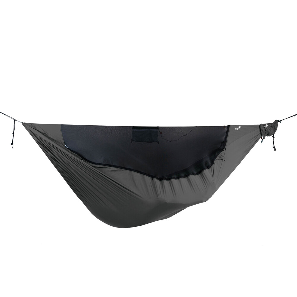 Újdonság a TTTM választékában a szúnyoghálóval egybeépített ultralight túrafüggőágy. Könnyen használható megoldás a rovarvédelem mellett történő szabadban alváshoz. A kényelem és a funkcionalitás maximalizálva, a tömeg pedig minimalizálva.