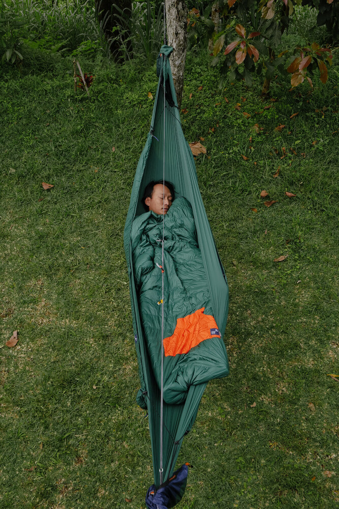 A magasabb szintű függőágyazás alapkelléke egy topquilt. Miután az alsó szeigetelésed már megvan (ami elengedhetetlen a függőágyban alváshoz), szükséged lesz egy kompakt méretű takaróra. A hálózsák innetől felesleges, és amúgy is macerás a használata függőágyban. A topquilt körülöleli a lábad, így nem csúszik le semerre,
