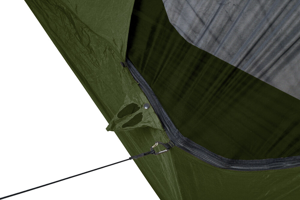 A legújabb a TTTM választékában a szúnyoghálóval egybeépített eredeti ejtőernyőselyemből készült túrafüggőágy. Könnyen használható megoldás a rovarvédelem mellett történő szabadban alváshoz. A kényelem és a funkcionalitás maximalizálva, a tömeg pedig minimalizálva.