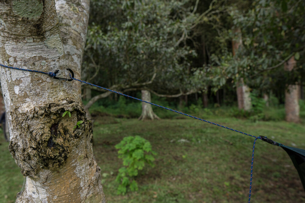- Esővédelem - Győződj meg arról, hogy a függőágyad két felfüggesztő kötelének vége lelóg, és így elvezeti a lefolyó csapadékot.
