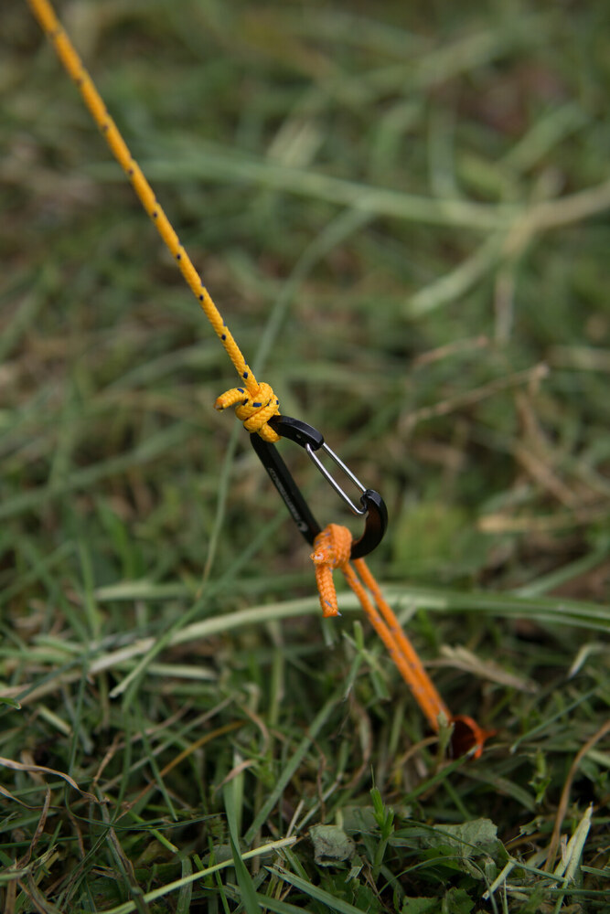 - A Moontarp sarkait cövekeld le a földbe, vagy rögzítsd őket a közelben található nehezékekkel (kő, másik fa, egyéb tereptárgy)