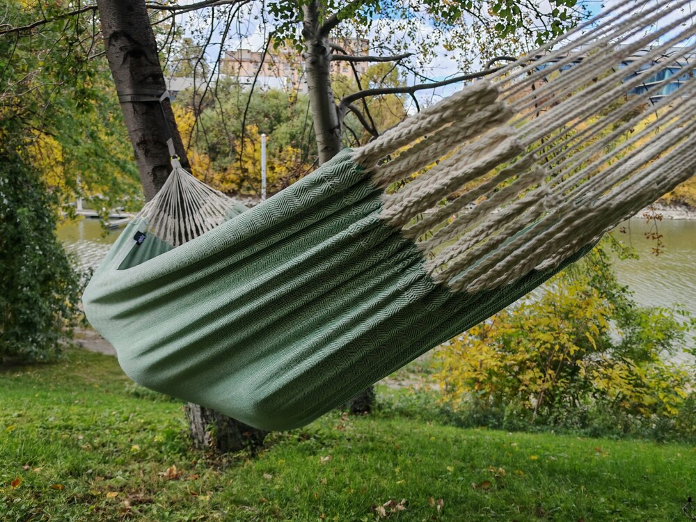 - Azonos anyagból készült hordozó/tároló válltáska jár a függőágyhoz.