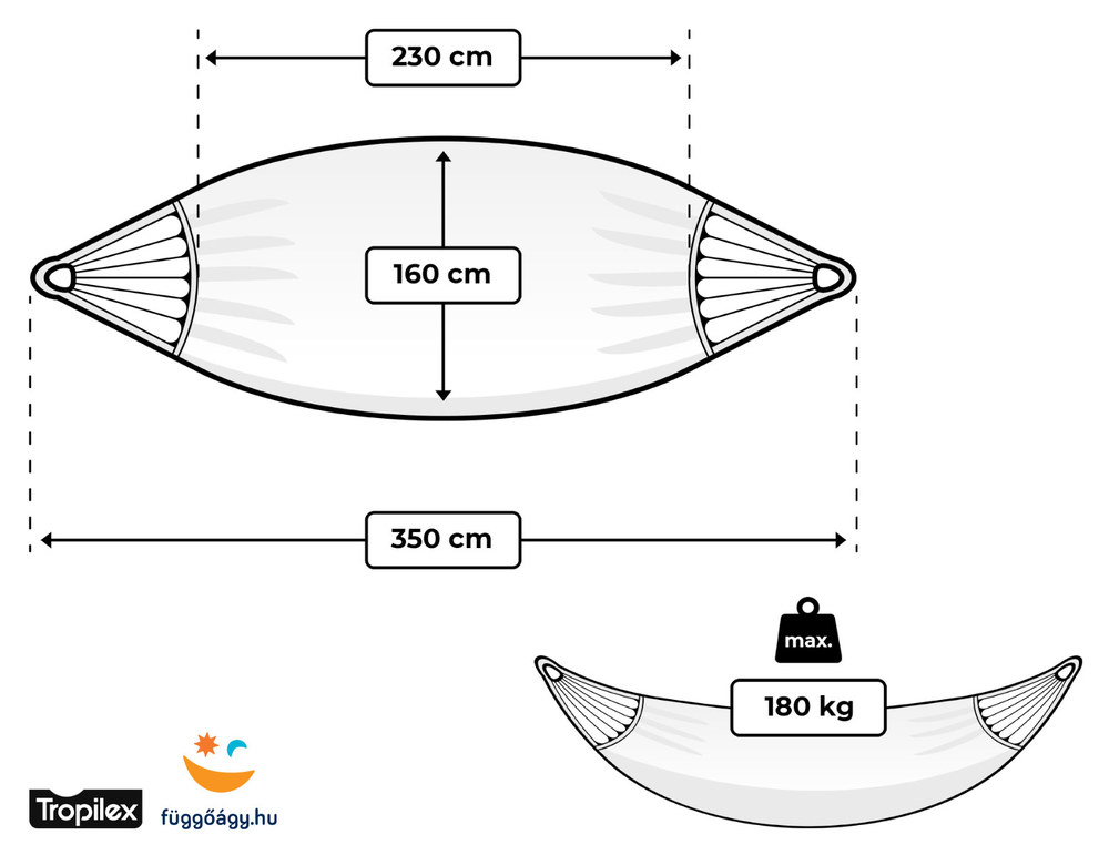 - 160 cm széles, 3,5 méter hosszú, 180 kg teherbírással