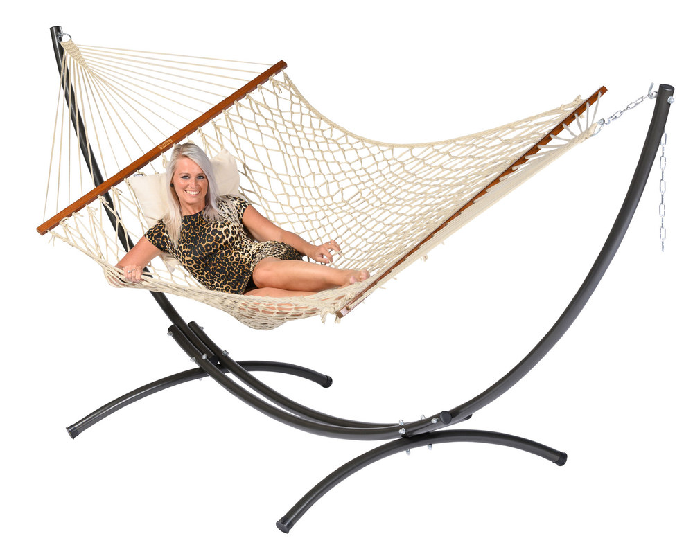 A háló nem csomózott, hanem fonott, így a végeredmény nagyon kényelmes. Az egyedülálló kettős fonási technika akár 40%-kal nagyobb teherbírást kínál, mint a hasonló függőágyak.
